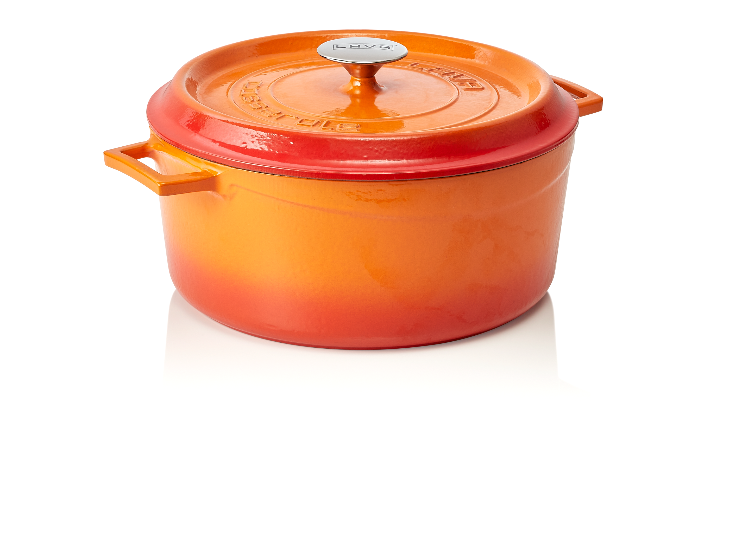 - Emailliert, mit angegossenen Seitengriffen, Deckel mit Chromnickelstahlgriff, Materialstärke: Boden - 5 mm / Rand - 4 mm
