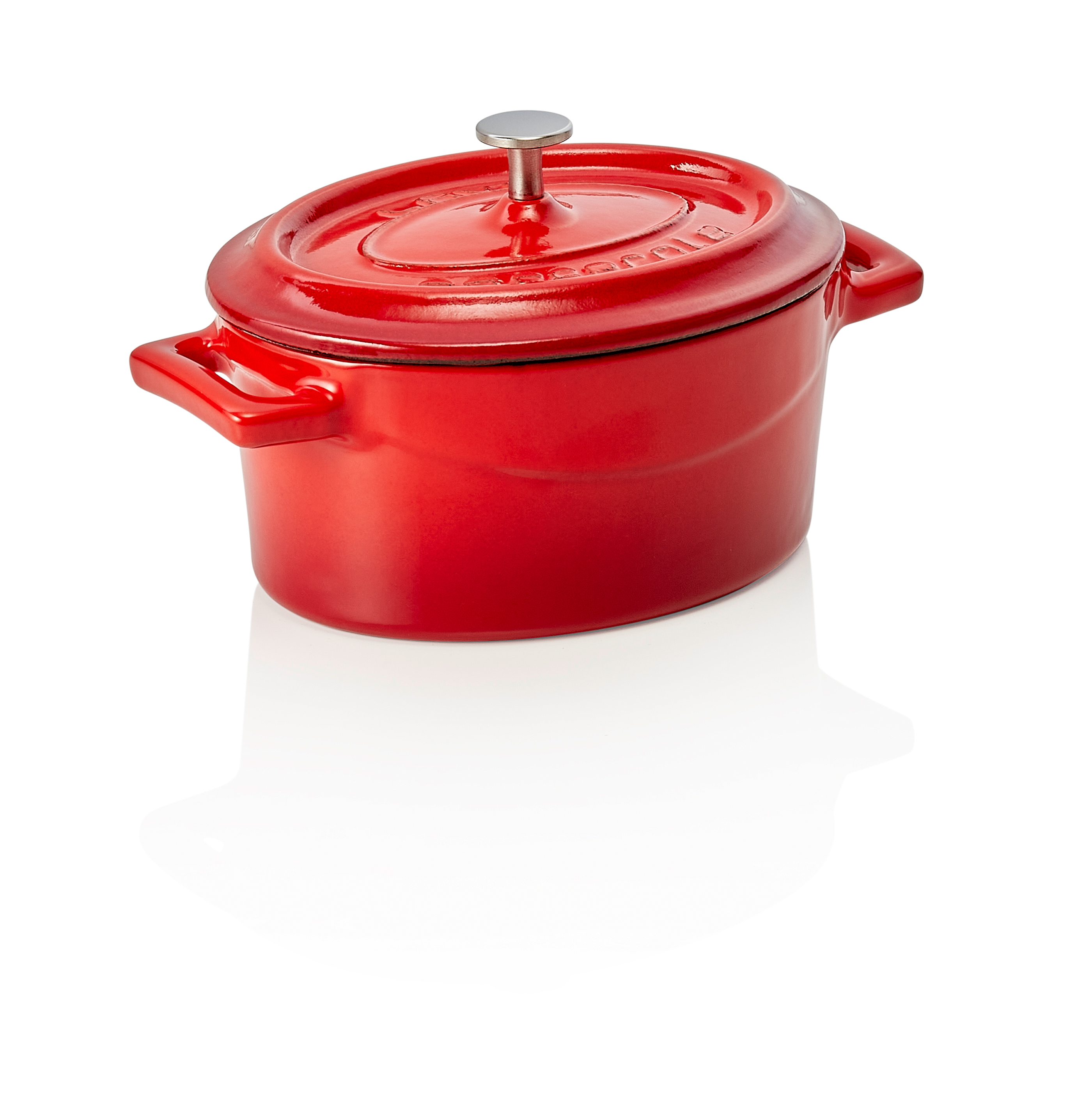 - Emailliert, mit angegossenen Seitengriffen, Deckel mit Chromnickelstahlgriff, Materialstärke: Boden - 3,5 mm / Rand - 3 mm