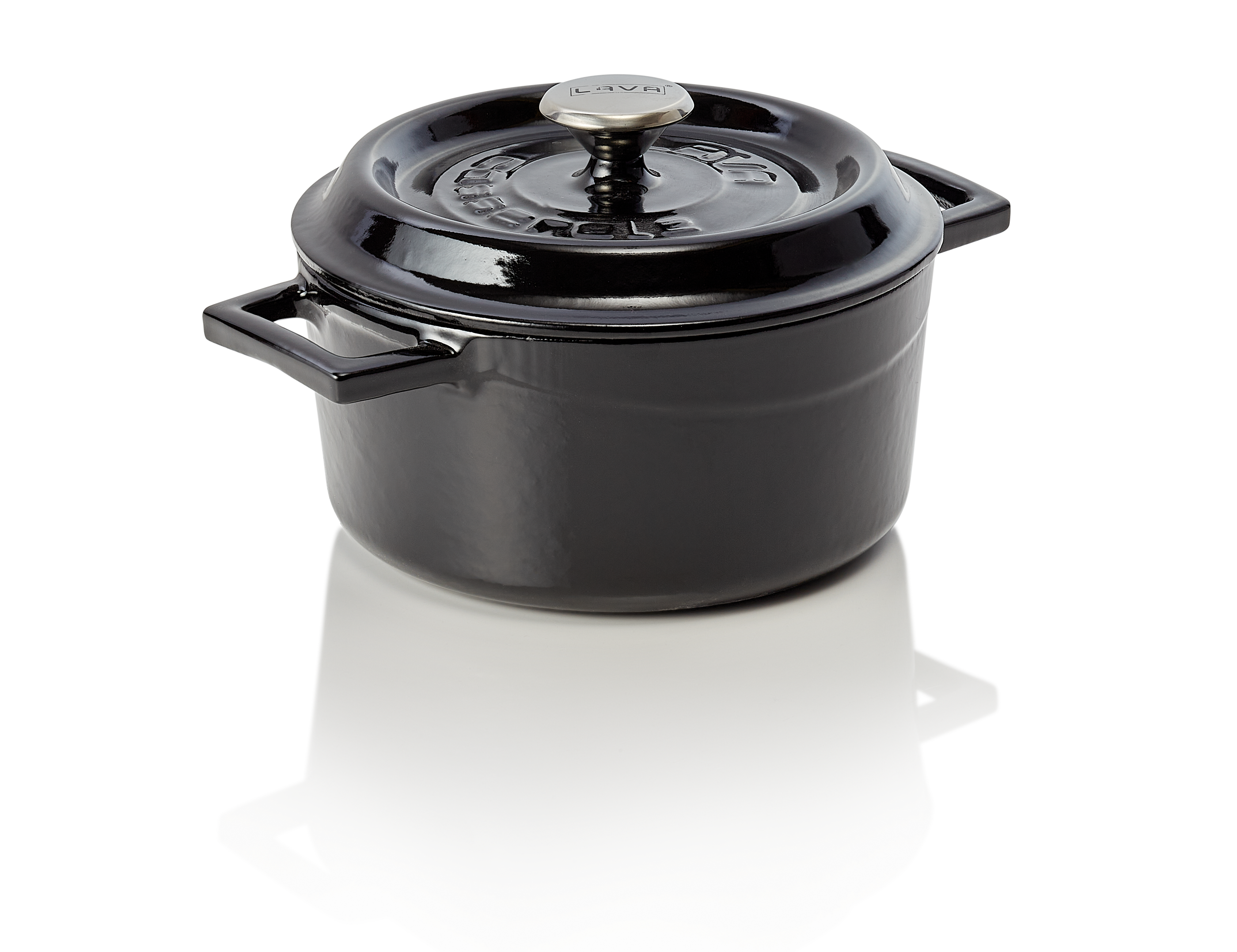 - Emailliert, mit angegossenen Seitengriffen, Deckel mit Chromnickelstahlgriff, Materialstärke: Boden - 4,5 mm / Rand - 3,5 mm