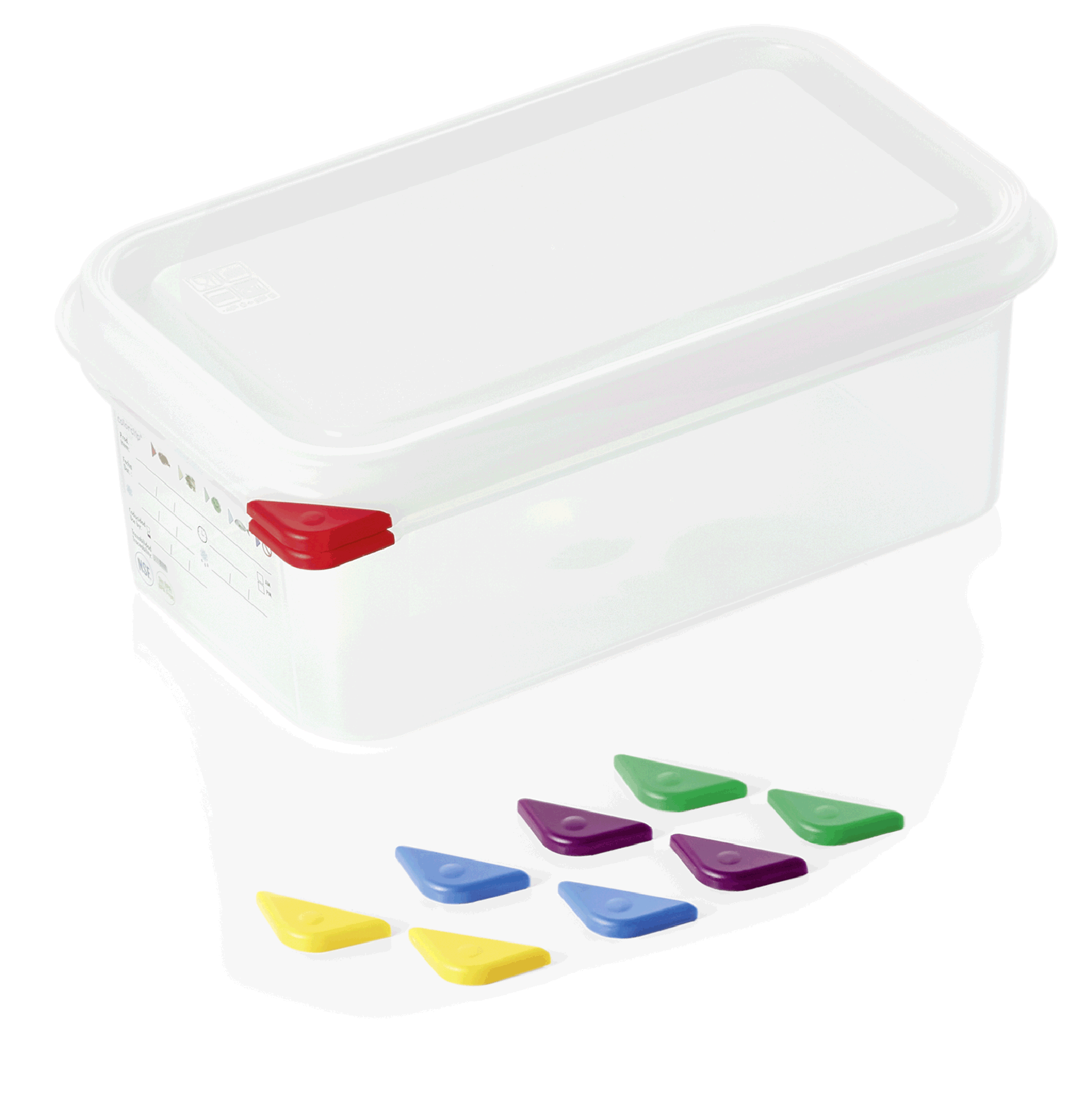 - BPA frei, Deckel hermetisch schließend, Inklusive 5 Markierungs-Clips in den Farben: rot, blau, gelb, grün, lila, Behälter sind beschreibbar, mit Skalierung