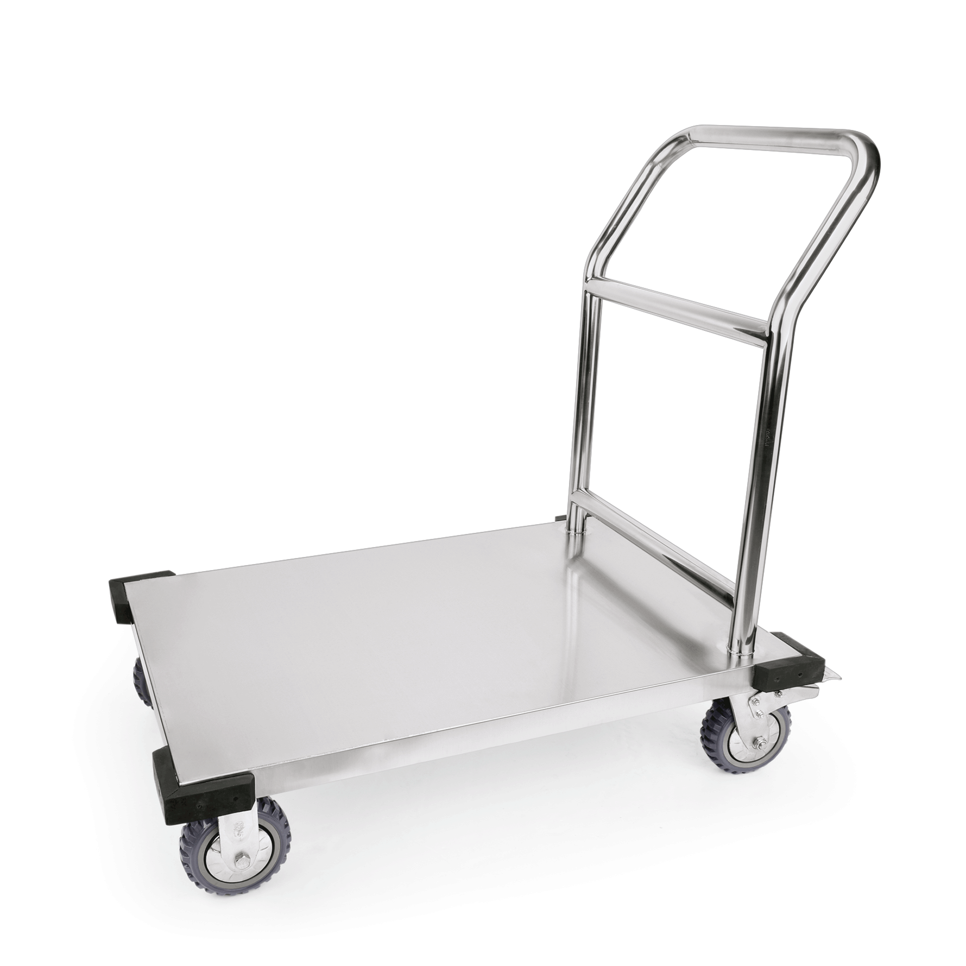 - Tragfähigkeit 180 kg, Plattform Höhe: 23 cm, 4 Rollen, davon 2 schwenkbar mit Feststeller, Ecken mit Rammschutz