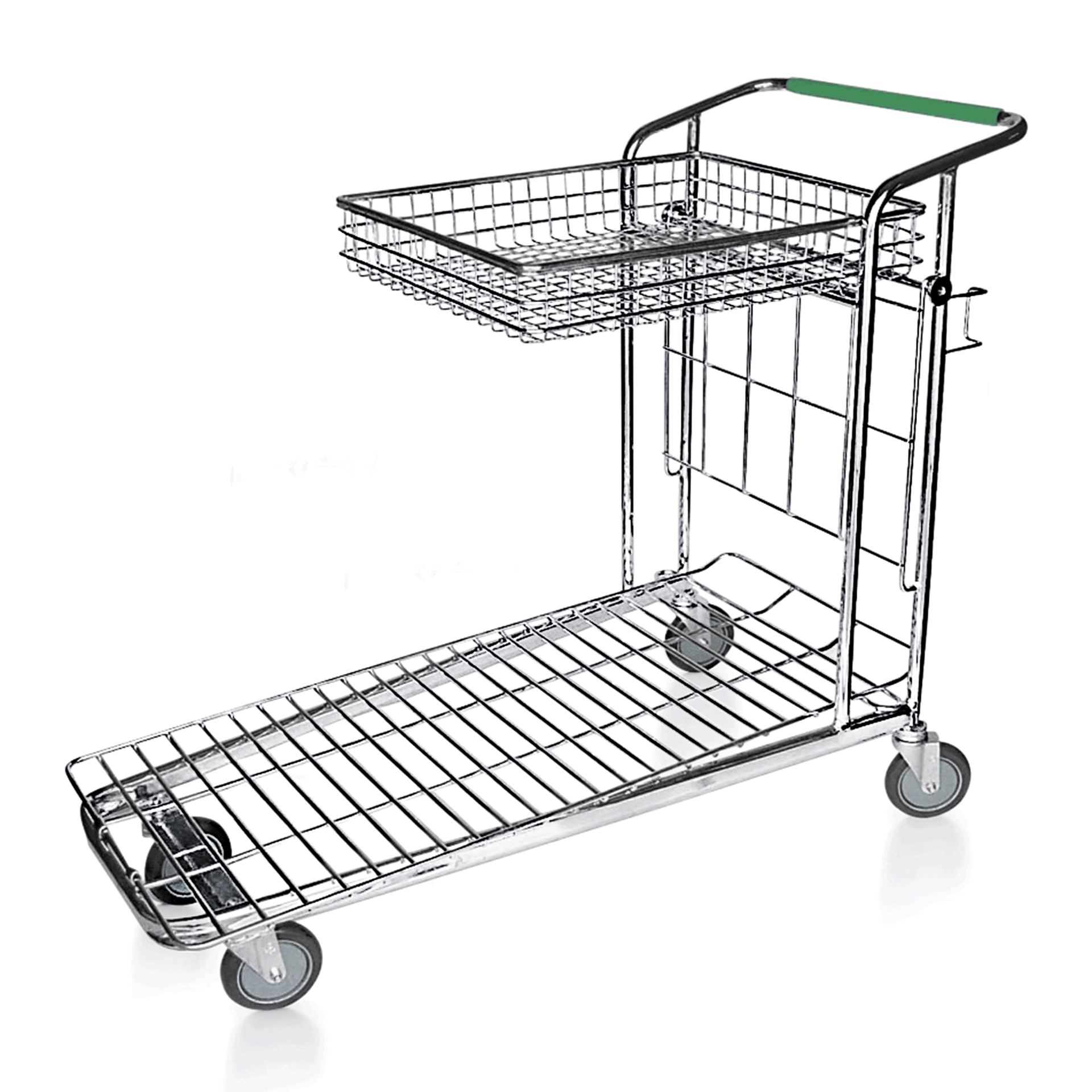 - 4 schwenkbare Rollen à Ø 15 cm, klappbarer Korb für Handgepäck, Tragfähigkeit ca. 200 kg, kann platzsparend zusammengeschoben werden, Ecken mit Rammschutz, verzinkter Stahl, mit transparenter Pulverbeschichtung