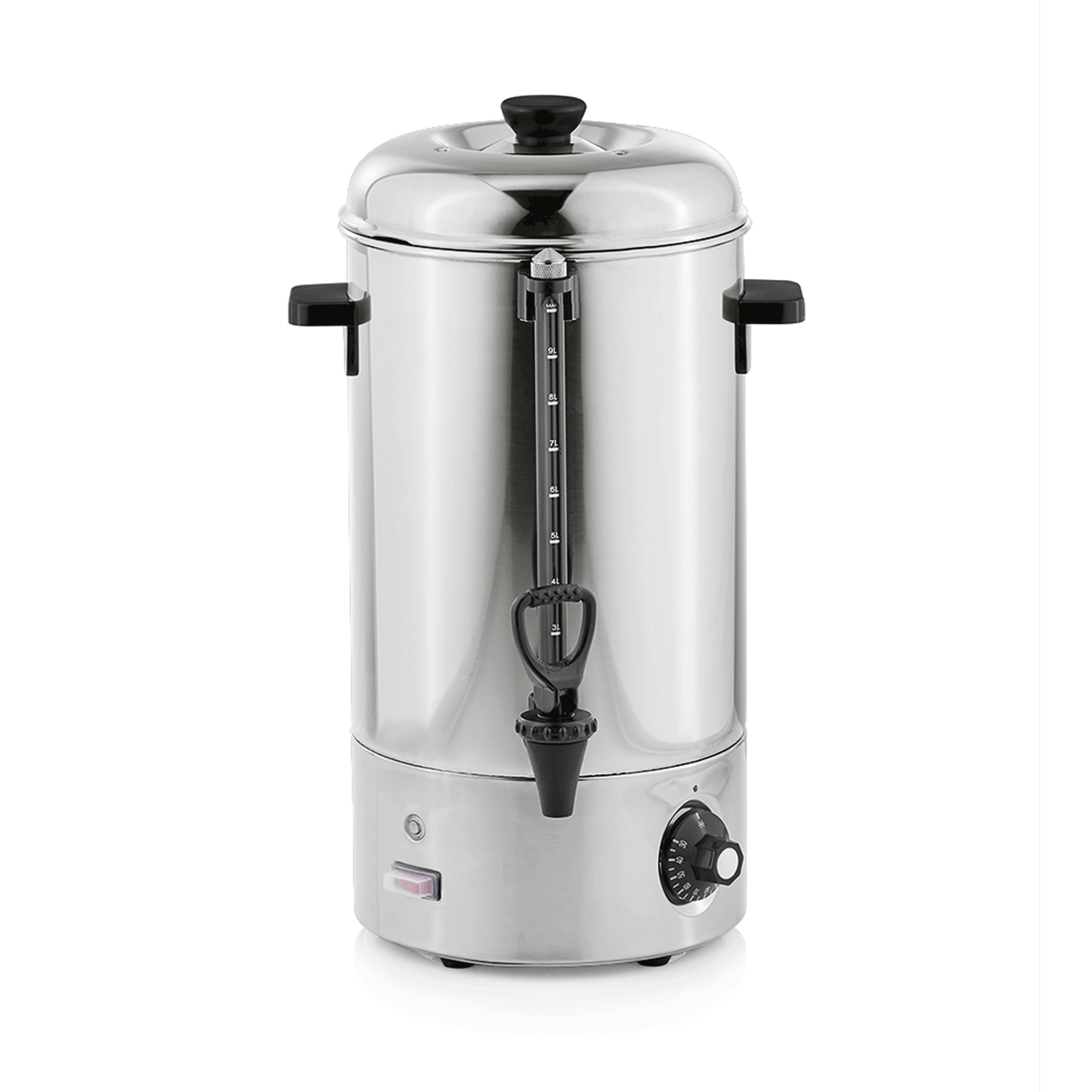 - Mit Seitengriffen. Sicherheitsthermostat verhindert Überhitzung bei leerem Behälter. Bei Überhitzung mit Reset-Schalter rücksetzbar