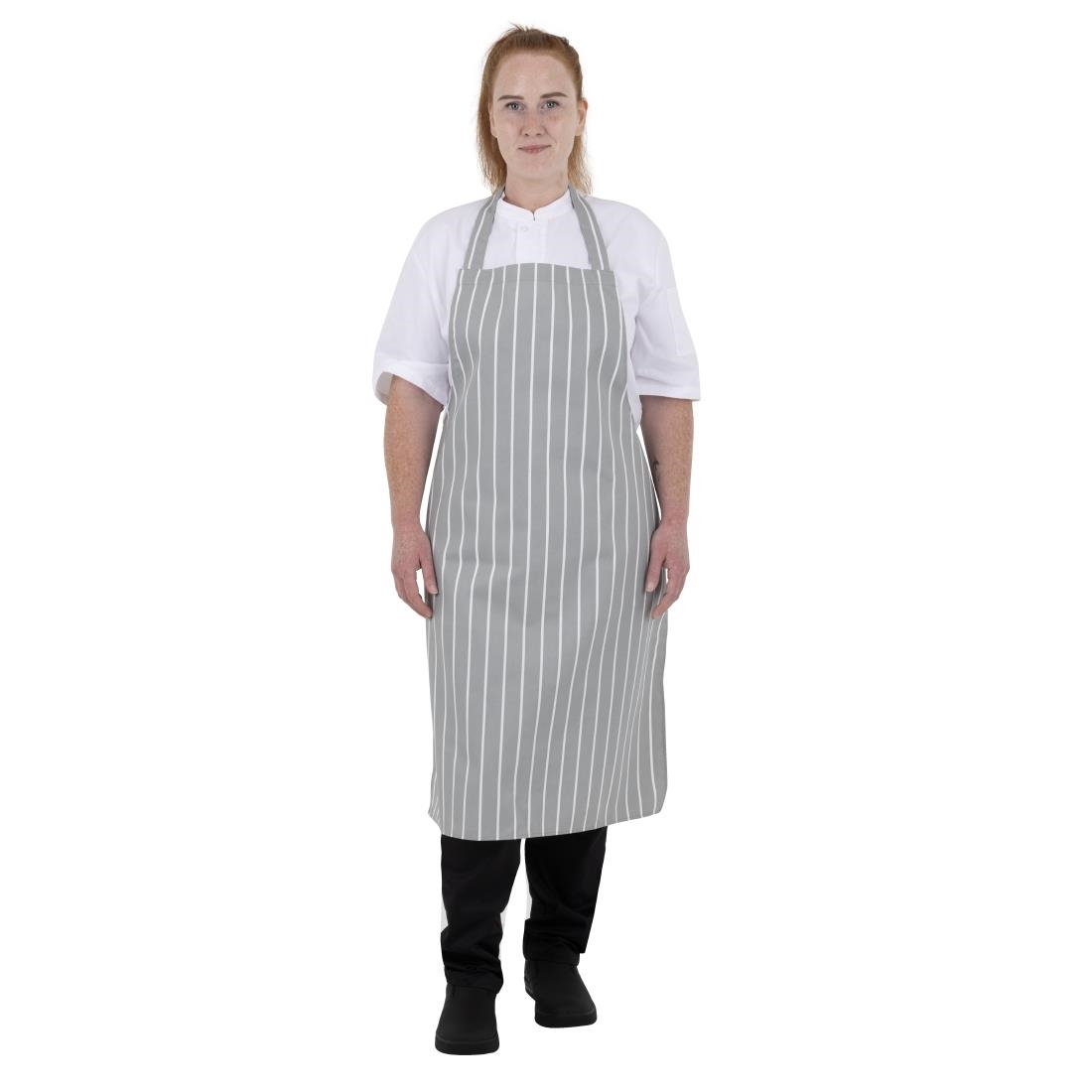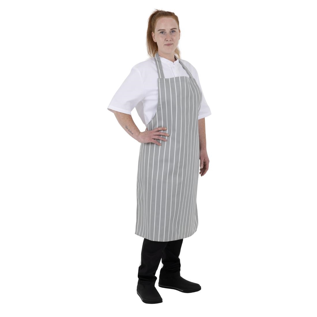 Whites Latzschürze Grau Weiß Metzgerstreifen
