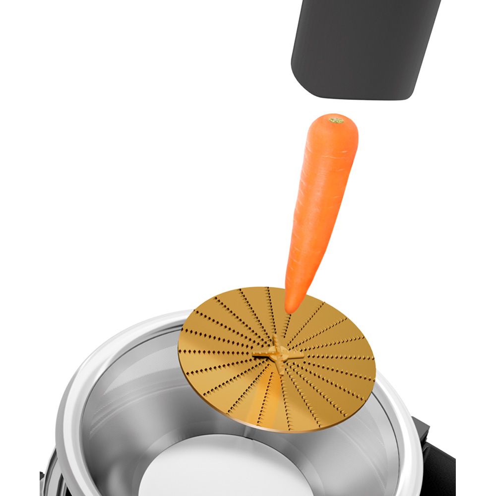 • Titanium Shredding Disc: Maximale Härte für alle Obst- und Gemüsesorten und längere Lebensdauer des Schliffs.